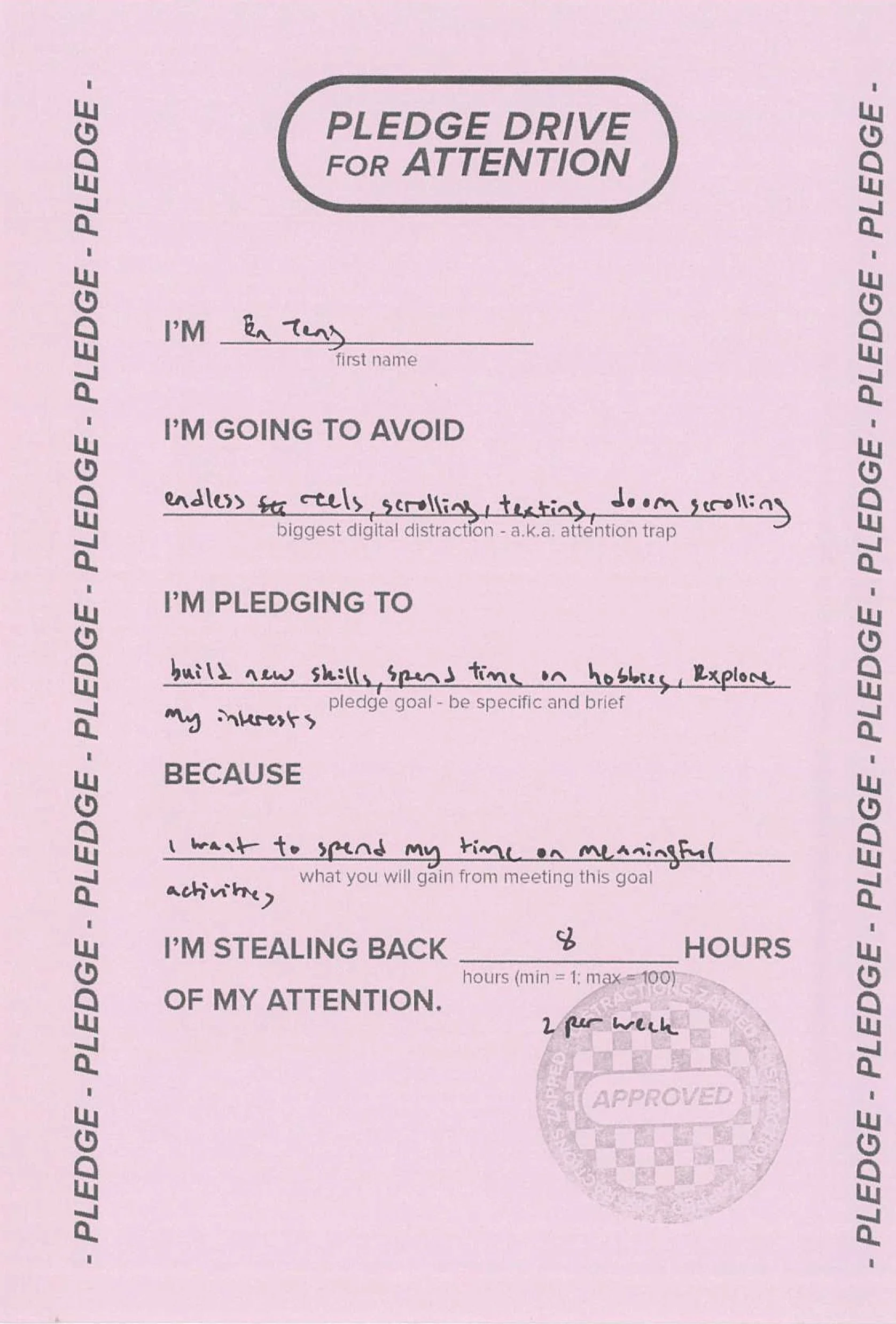 Stealing back our attention one pledge at a time